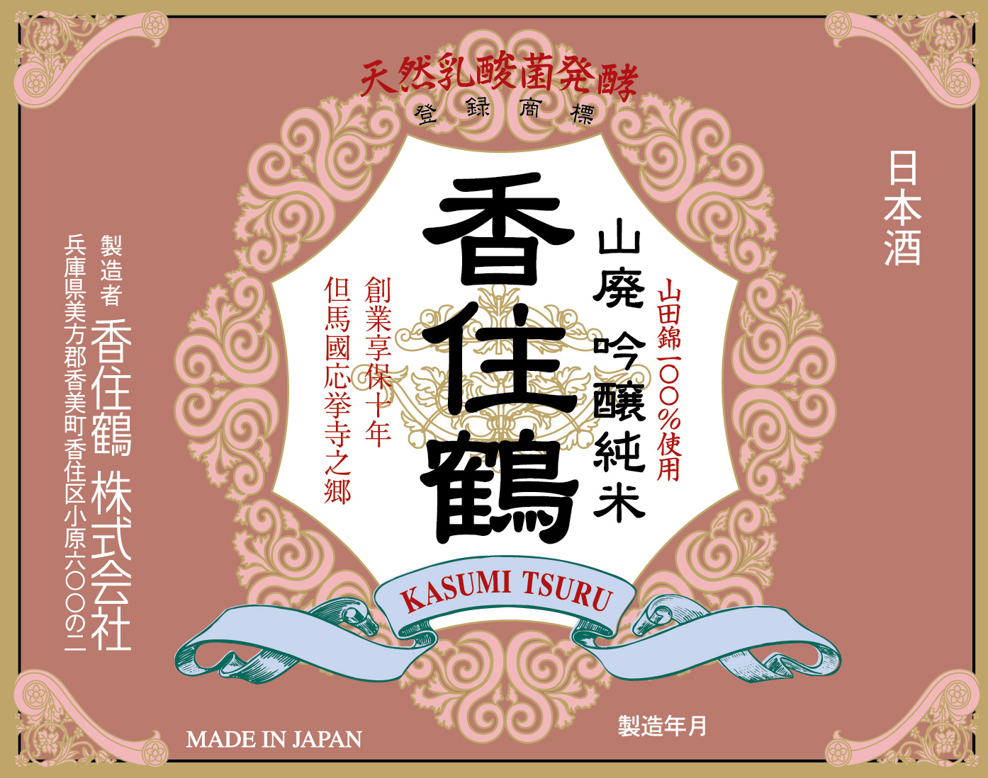 Kasumi Tsuru Yamahai Tokubetsu Junmai Label