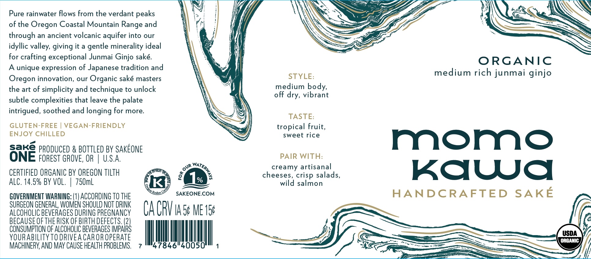 Momokawa Organic Junmai 750ml Label
